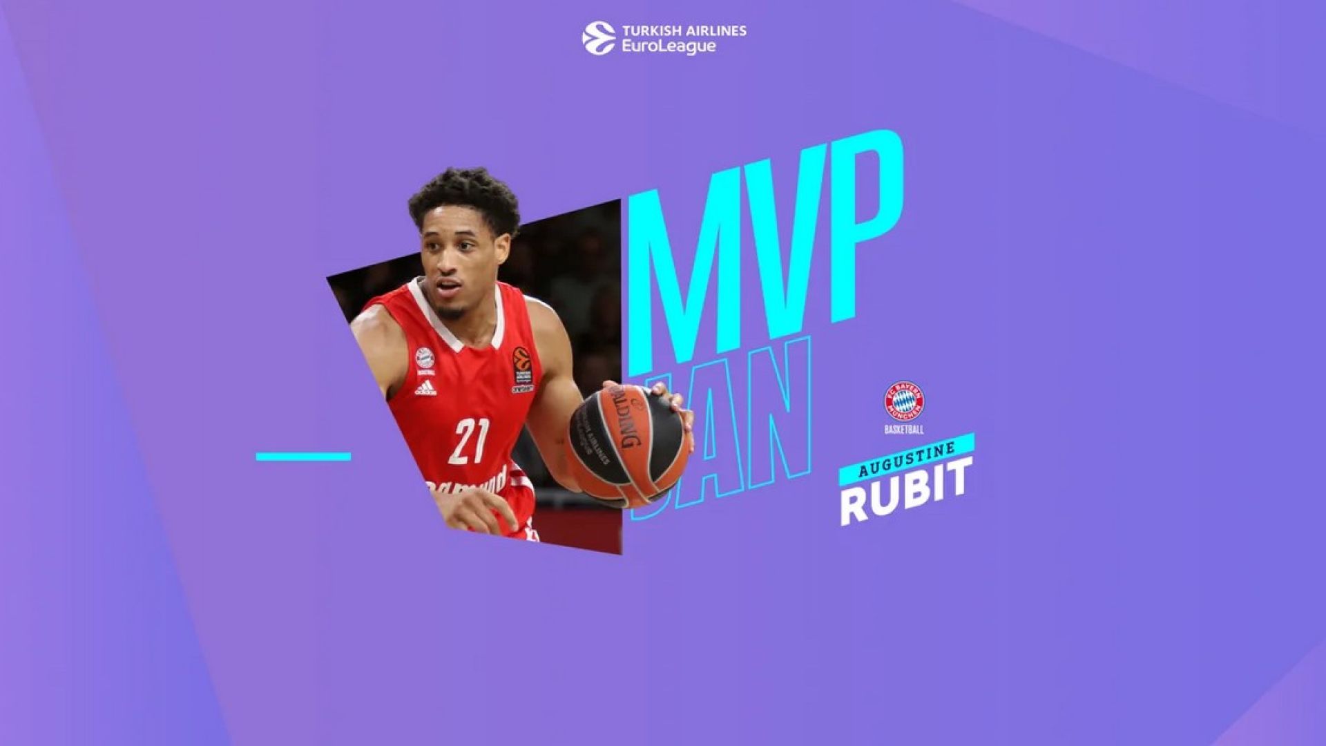 Πολυτιμότερος παίκτης για τον Ιανουάριο αναδείχθηκε από τη Euroleague ο Όγκουστιν Ρούμπιτ, με τον άλλοτε αθλητή του Ολυμπιακού να βοηθά τη Μπάγερν στο σερί που έκτισε στον πρώτο μήνα του 2023.