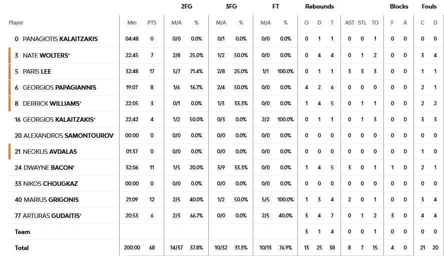 Τα δεκάλεπτα: 26-14, 48-30, 68-57, 83-68