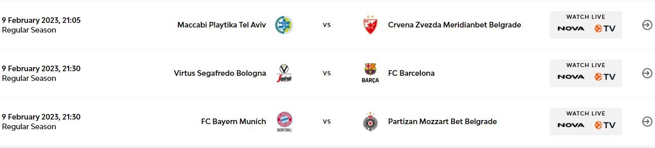 Τέλος, η Μπάγερν υποδέχεται στο Μόναχο την Παρτιζάν. Οι φιλοξενούμενοι με νίκη παραμένουν στις θέσεις που οδηγούν στα πλέι οφ της Euroleague, ενώ από την άλλη ομάδα του Αντρέα Τρινκιέρι θέλει να φτάσει στο 10ο θετικό αποτέλεσμα στη διοργάνωση για φέτος.