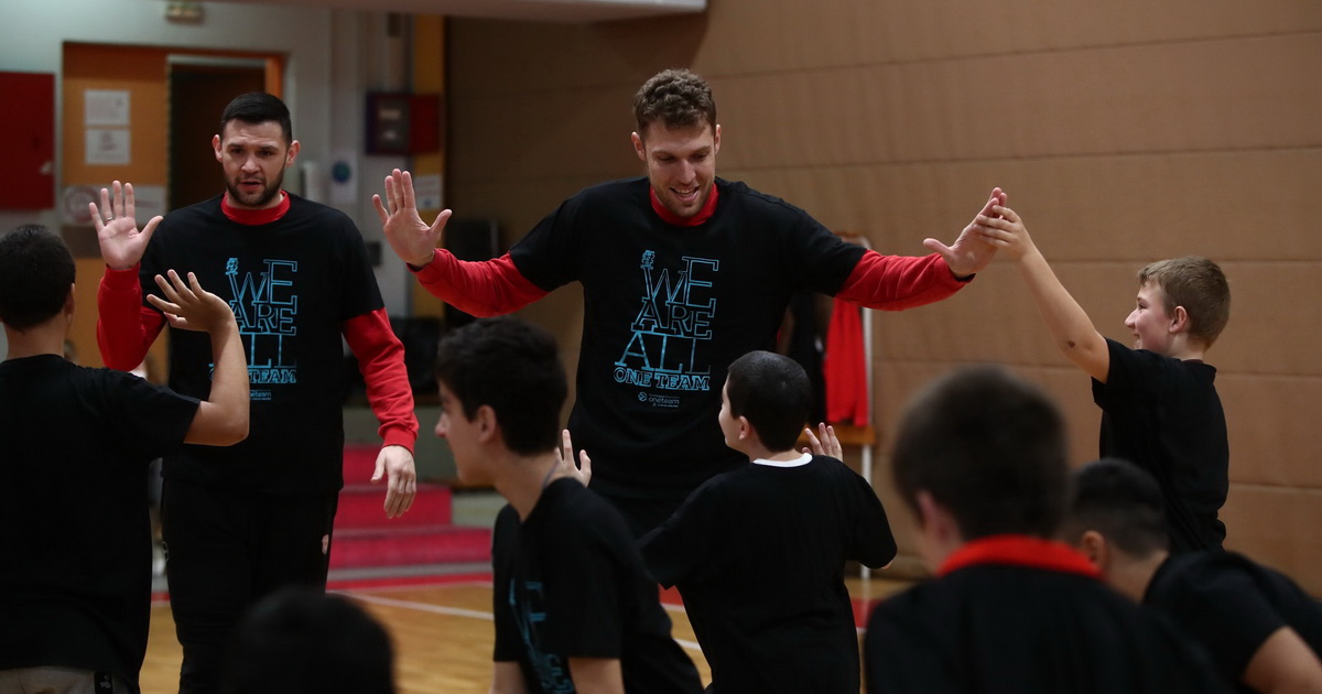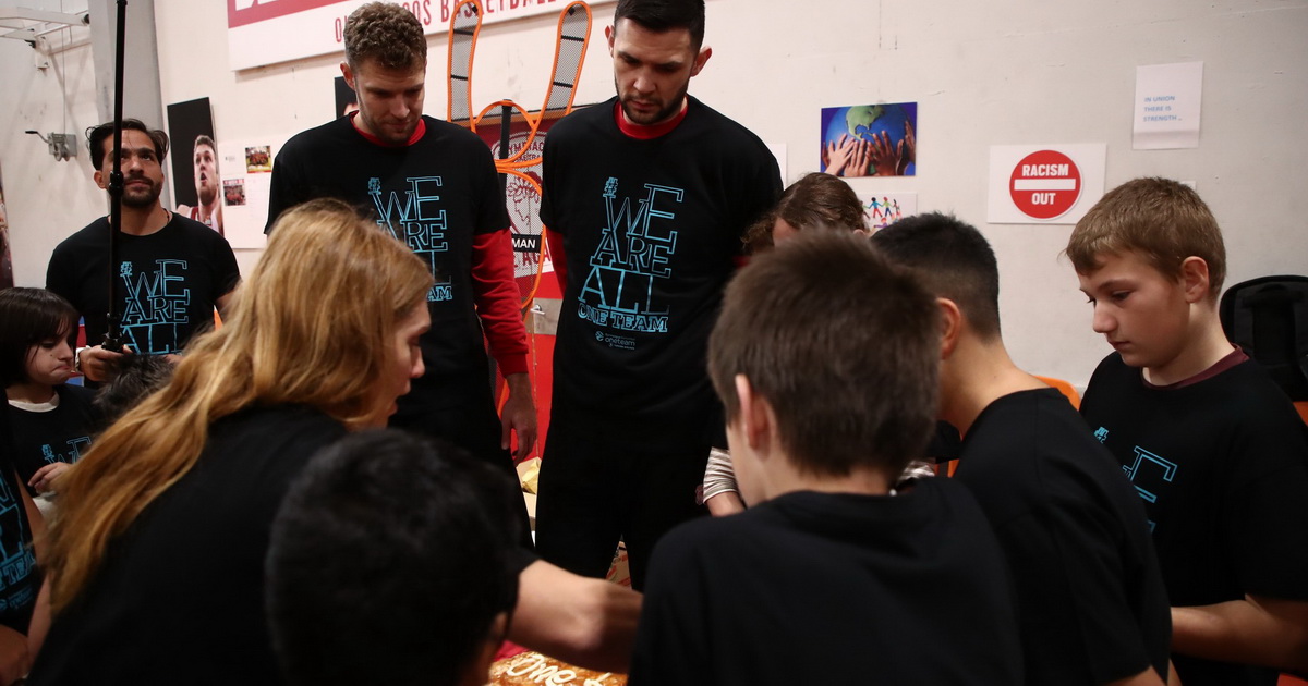 Οι αθλητές μας υποδέχθηκαν με χαμόγελα και αγκαλιές τους πρεσβευτές του One Team, Κώστα Παπανικολάου και Σάσα Βεζένκοβ, οι οποίοι μέσα από διδακτικά παιχνίδια (ανάμεσά τους και εκείνο της επικοινωνίας), πρόσφεραν γέλιο και γνώση ταυτόχρονα!