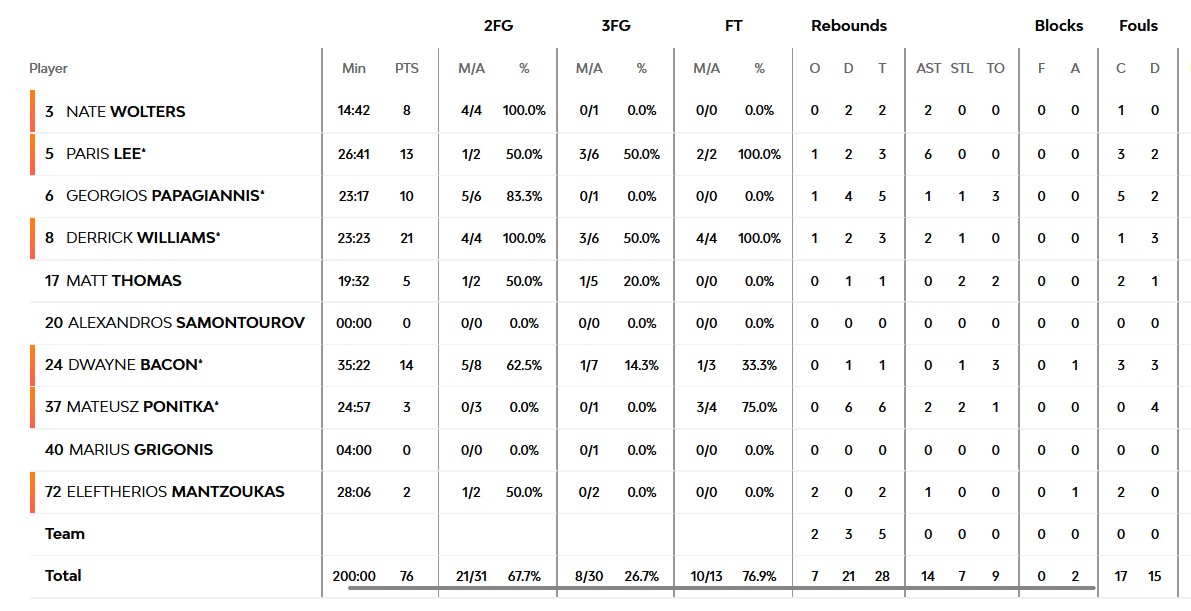 Ξεχώρισαν: Παπαγιάννης, Γουίλιαμς από τον Παναθηναϊκό, Τόνουτ, Ντέιβις, Νάπιερ από την Αρμάνι Μιλάνο