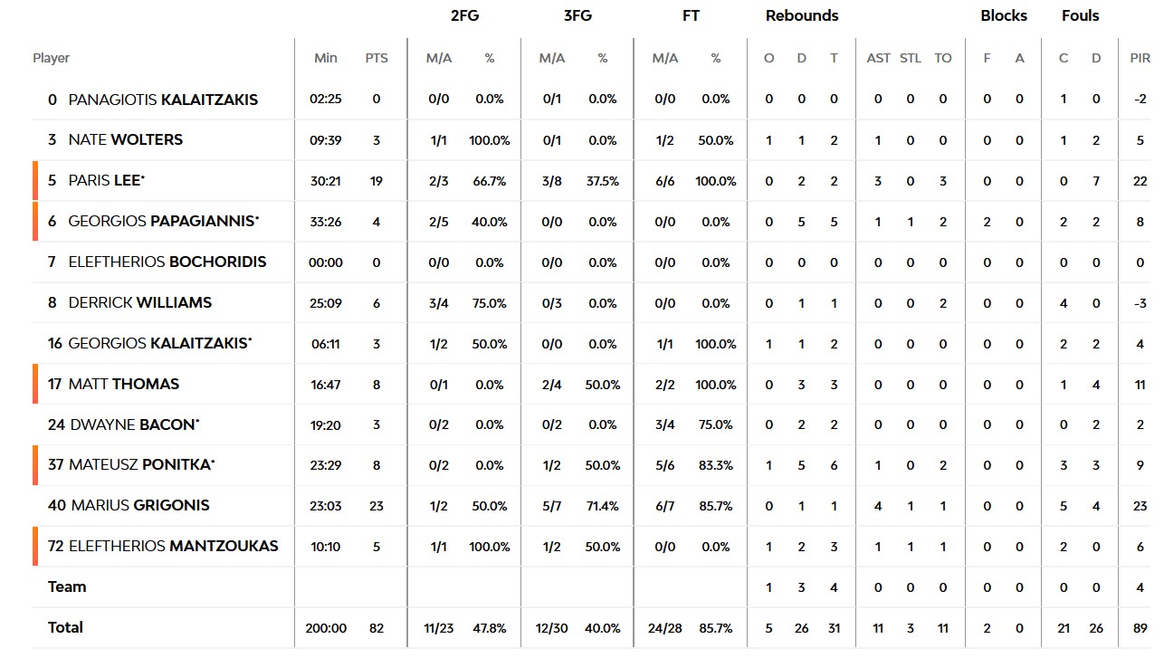 Ξεχώρισαν: Κλάιμπερν, Μπράιαντ, Ζίζιτς από την Έφες, Γκριγκόνις, Λι από τον Παναθηναϊκό