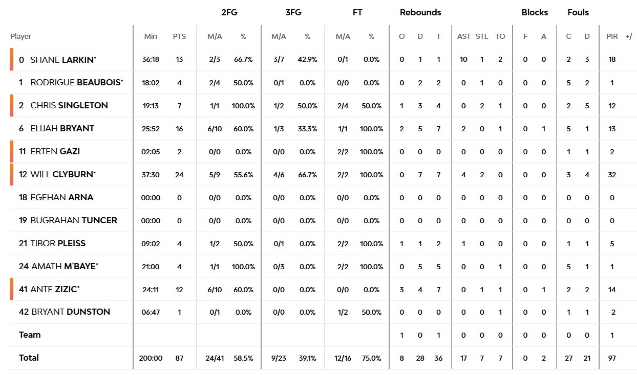Αποφασισμένοι και δείχνοντας να ακολουθούν το πλάνο τους παρουσιάστηκαν οι «πράσινοι», κάτι που τους έδωσε και ένα μικρό προβάδισμα. Οι Τούρκοι, παρά το ότι δεν διανύουν το καλύτερο… φεγγάρι τους φέτος, παραμένουν μια επικίνδυνη ομάδα με παίκτες που μπορούν να κάνουν τη ζημιά. Ο Κλάιμπερν ήταν αυτός που έκανε το πρώτο βήμα στην πρώτη περίοδο με 7 πόντους και 4 ριμπάουντ σε αυτό το διάστημα.