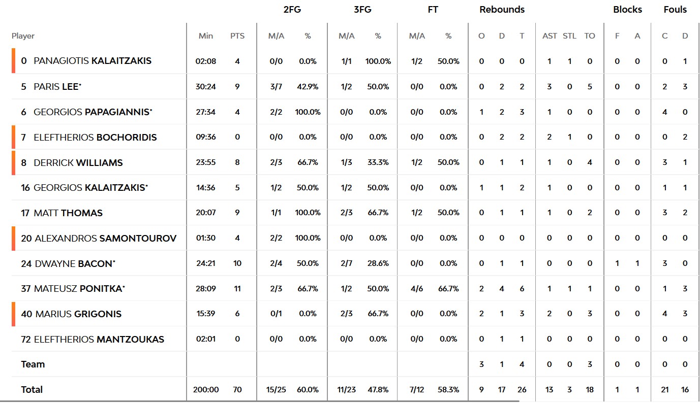 Η μεγαλύτερη διαφορά: +20 (79-59, 37') για τη Μονακό, +2 (5-7, 3’) για τον Παναθηναϊκό