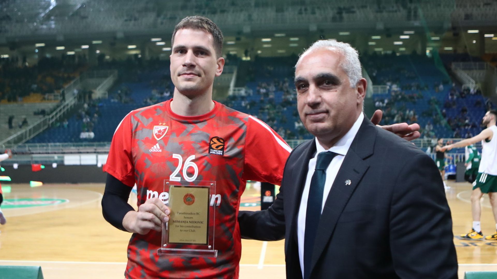 Έτσι, πριν την έναρξη της αναμέτρησης του ΟΑΚΑ, η ΚΑΕ Παναθηναϊκός βράβευσε με πλακέτα τον γκαρντ του Ερυθρού Αστέρα, με τον κόσμο να αποθεώνει το πρώην αγαπημένο του παιδί.