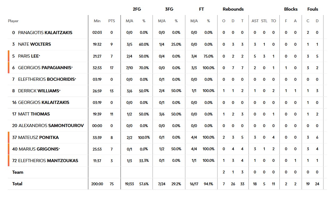 *Απουσίες: Ο Παναθηναϊκός αγωνίστηκε χωρίς τον τραυματία Γκουντάιτις, ενώ στη δωδεκάδα ήταν και πάλι ο Αλέξανδρος Σαμοντούροβ. Εκτός δωδεκάδας ήταν ο Ντουέιν Μπέικον.