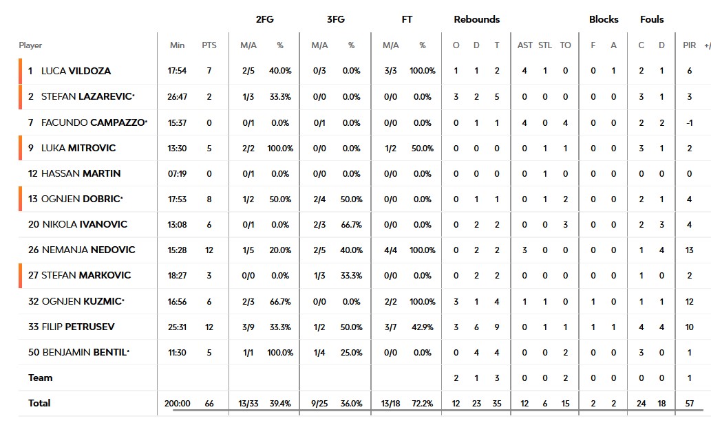 Το πρώτο δεκάλεπτο εξελίχθηκε σε κάτι σαν Παπαγιάννης-Ερυθρός Αστέρας. Από τους 9 πόντους που σημείωσαν οι «πράσινοι» στο διάστημα αυτό ο Έλληνας διεθνής είχε τους έξι από αυτούς και επιπλέον τέσσερα ριμπάουντ. Στον απολογισμό της πρώτης περιόδου τα μηδέν τρίποντα των γηπεδούχων σε πλήρη αντίθεση με την ευστοχία των Σέρβων από τη γραμμή. Το 7-7 (6’15’’) έγινε 7-15 (8’50’’) με τον Νέντοβιτς σε πρώτο ρόλο και τους φιλοξενούμενους να έχουν 3/6 τρίποντα και να κυριαρχούν στα ριμπάουντ (6-11).