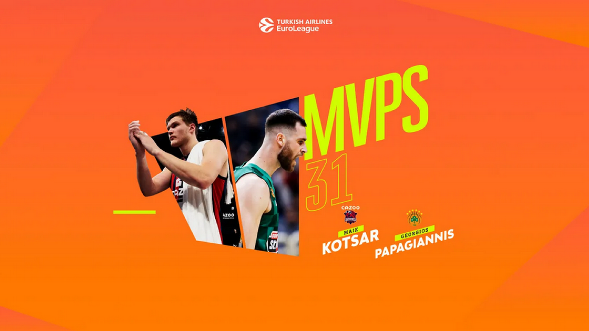 Στα δύο μοιράστηκε το βραβείο της 31ης αγωνιστικής της Euroleague, με τους Γιώργο Παπαγιάννη και Μάικ Κότσαρ να κυριαρχούν.