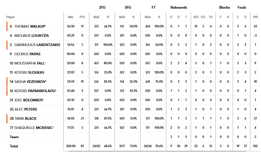 O Γιώργος Παπαγιάννης ήταν εκεί με τέσσερις συνεχόμενους πόντους για το 68-67 (36'), αλλά η 11η ασίστ του Γουόκαπ οδήγησε στο 71-67 από τον Βεζένκοφ και η 12η στο 73-67 (37'20'') από τον Μπλακ, ο οποίος έγραψε και το 75-70 (38'10'') και το 81-73 (39'25'') δίνοντας ουσιαστικά τέλος στον αγώνα, με την αυλαία να πέφτει με το τελικό 81-73.