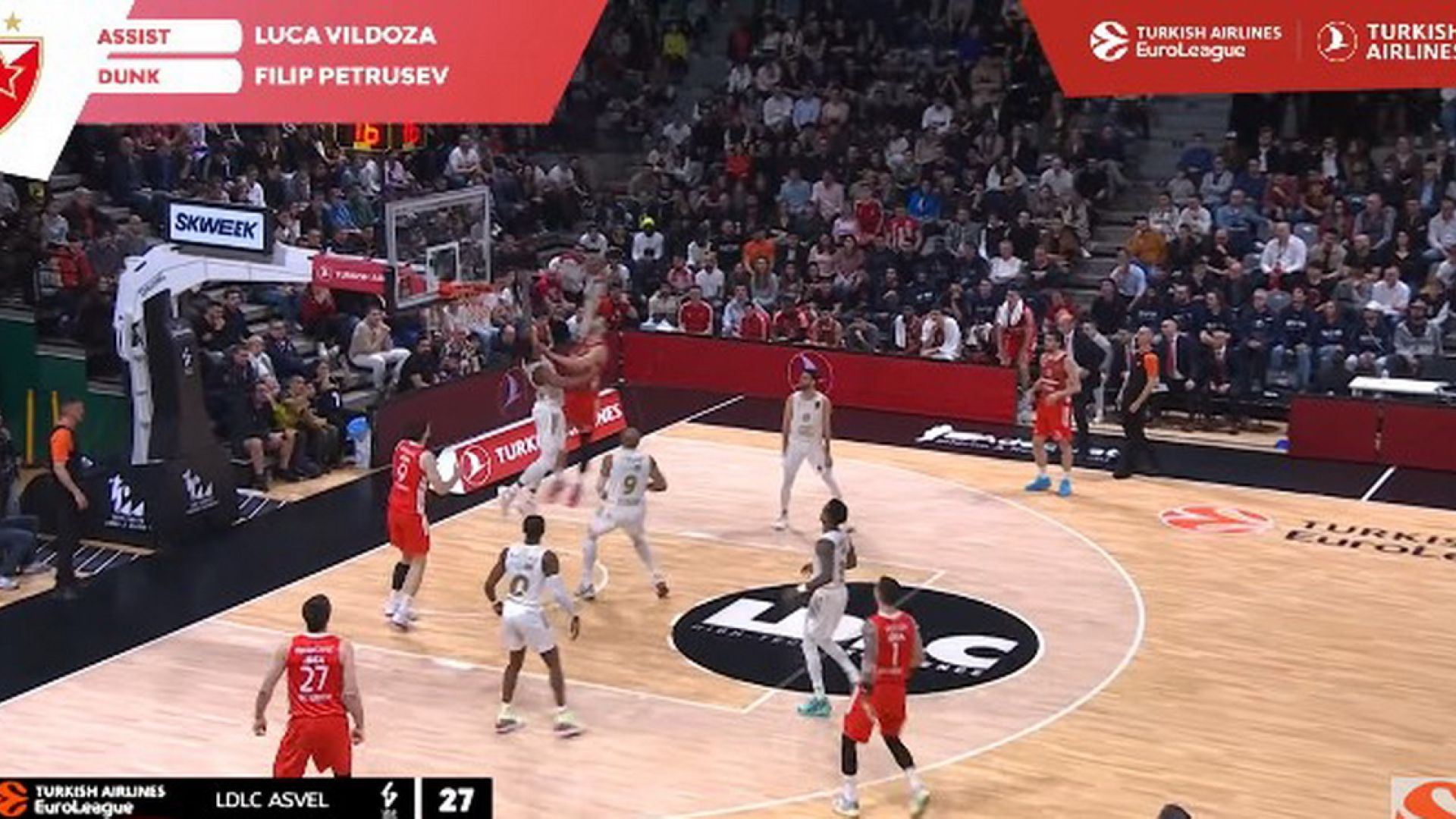 Πλούσιο θέαμα σε ακόμα μία αγωνιστική της Euroleague, με την παράσταση να κλέβει το πόστερ κάρφωμα του Πετρούσεβ, μετά από ασίστ του Βιλντόσα, από την νίκη του Ερυθρού Αστέρα επί της Βιλερμπάν στο «Αστρομπάλ».