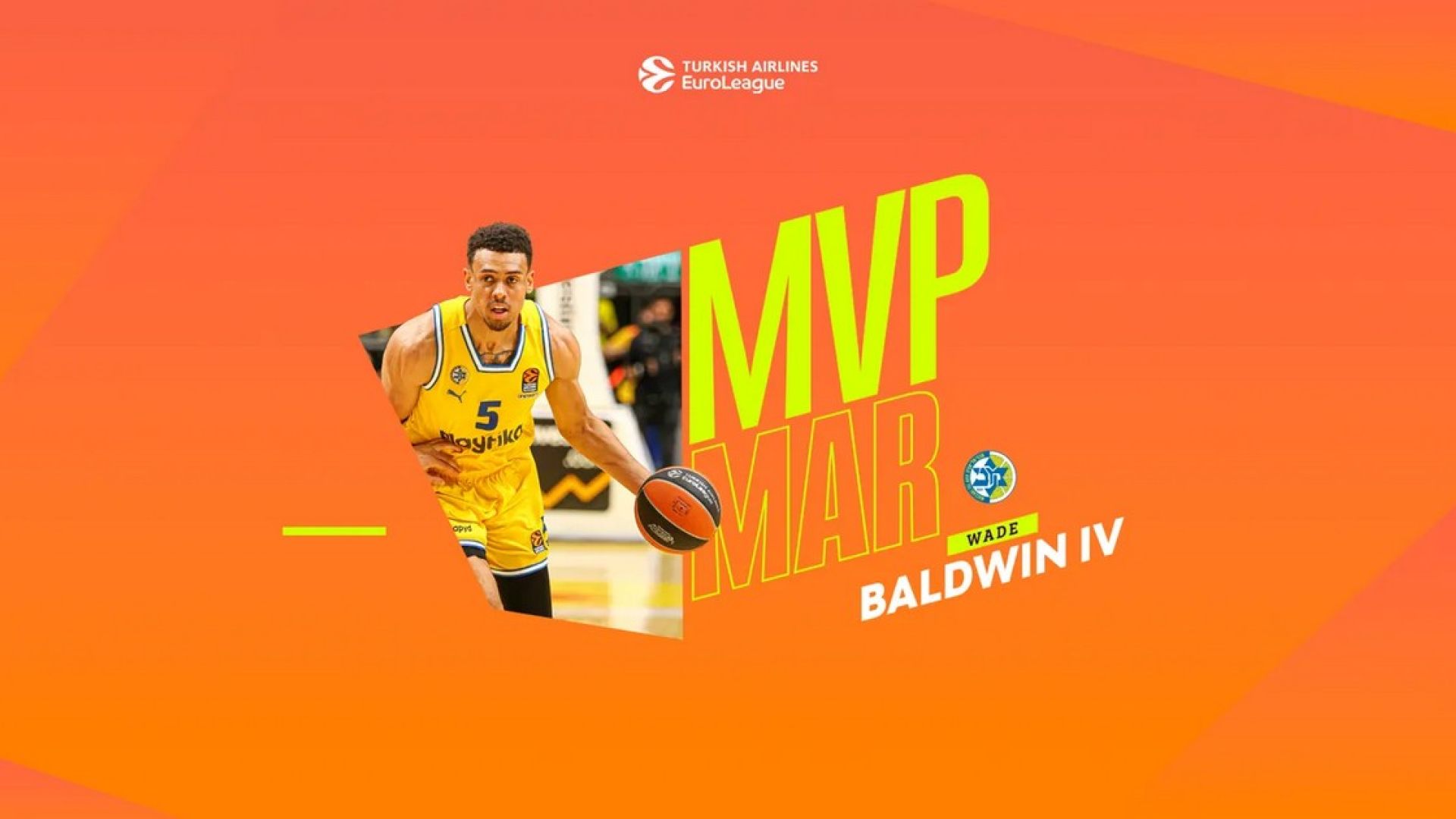 Πολυτιμότερος παίκτης της Euroleague για το μήνα Μάρτιο αναδείχθηκε ο Μπάλντγουιν, με τον Αμερικανό να είναι πρωταγωνιστής στις 6 σερί νίκες που σημείωσε η Μακάμπι.