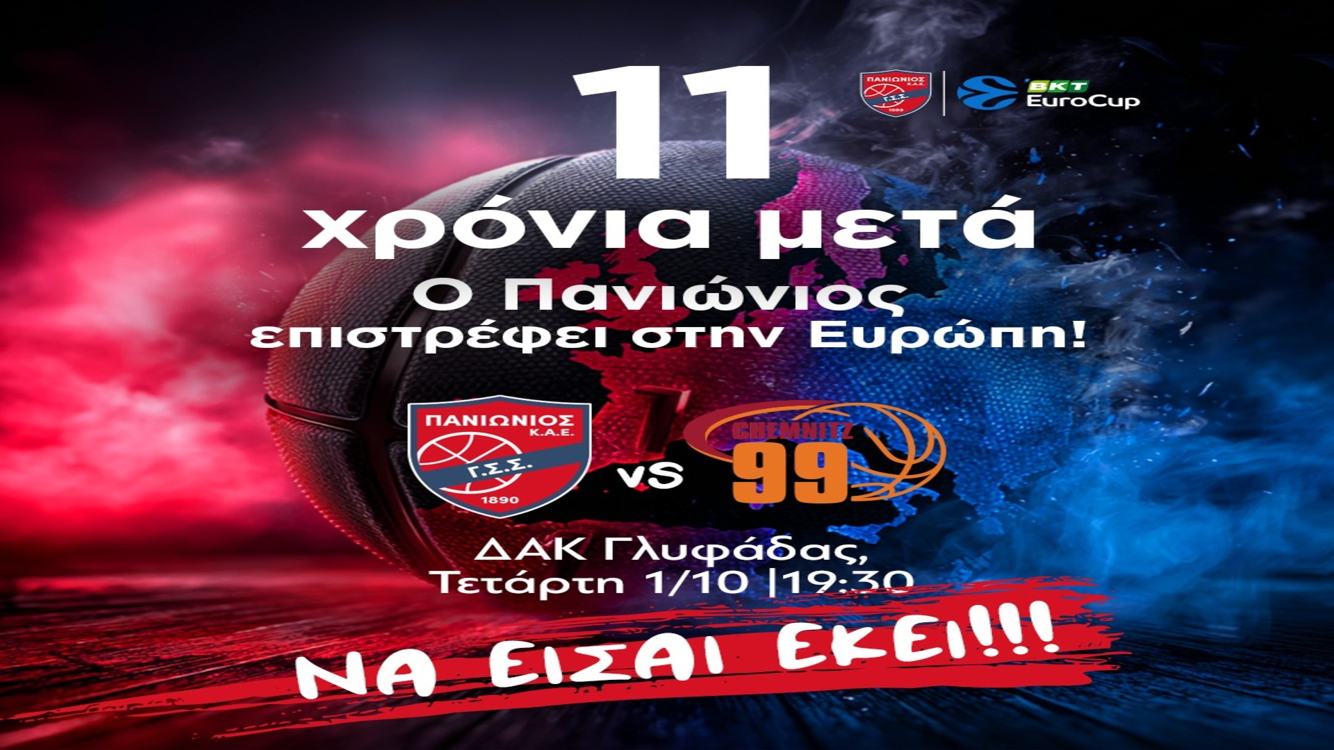 Πανιώνιος, EuroCup: Απέναντι στην Κέμνιτς για την ευρωπαϊκή επιστροφή των «κυανέρυθρων» ύστερα από 11 χρόνια