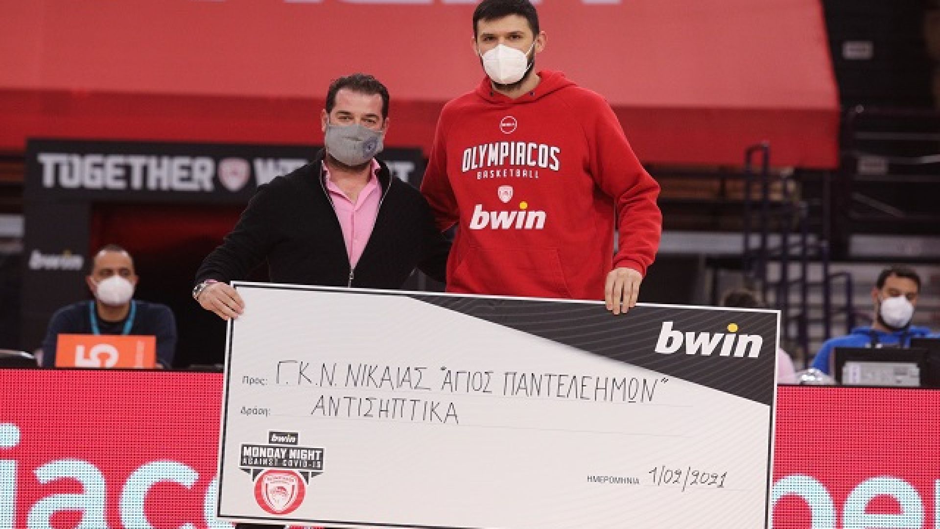 Ο Κώστας Παπανικολάου παρέδωσε στο Περιφερειακό Γενικό Κρατικό Νοσοκομείο Νίκαιας «Άγιος Παντελεήμων» αντισηπτικά για το προσωπικό ενώ την επιταγή παρέλαβε ο ιδιοκτήτης της ΚΑΕ Ιωνικός, Βαγγέλης Τσάπας.