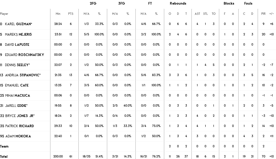 Ξεχώρισαν : Από πλευράς Άρη ο Κατσίβελης με 11 πόντους και ο Χάρελ με 10 πόντους και 8 ριμπάουντ, ενώ από πλευράς Κλουζ ξεχώρισαν ο Στιπάνοβιτς ,ο Μέγερις και ο Πάτρικ με 13 , 12 και 10 πόντους αντίστοιχα