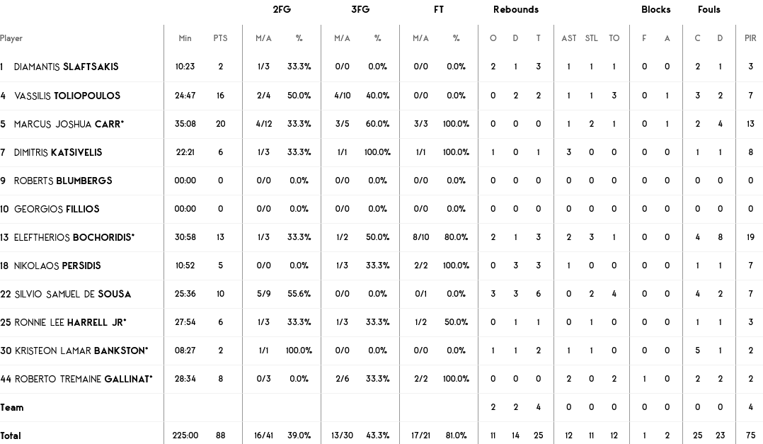 Ξεχώρισαν: Ο Τολιόπουλος με 16 πόντους και το τρίποντο ισοφάρισης στην κανονική διάρκεια και από την Ουλμ ο Τρέβιον Γουίλιαμς με 20 πόντους, 9 ριμπάουντ και 4 ασίστ.