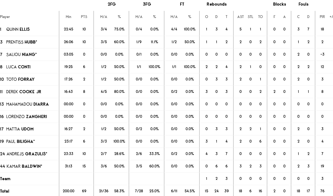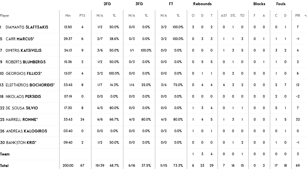 Ξεχώρισαν: Εννιά πόντους σημείωσε ο Κατσίβελης και οκτώ ο Μποχωρίδης, ενώ για την Τρέντο, 15 πόντους σημείωσε ο Μπάλντγουιν.