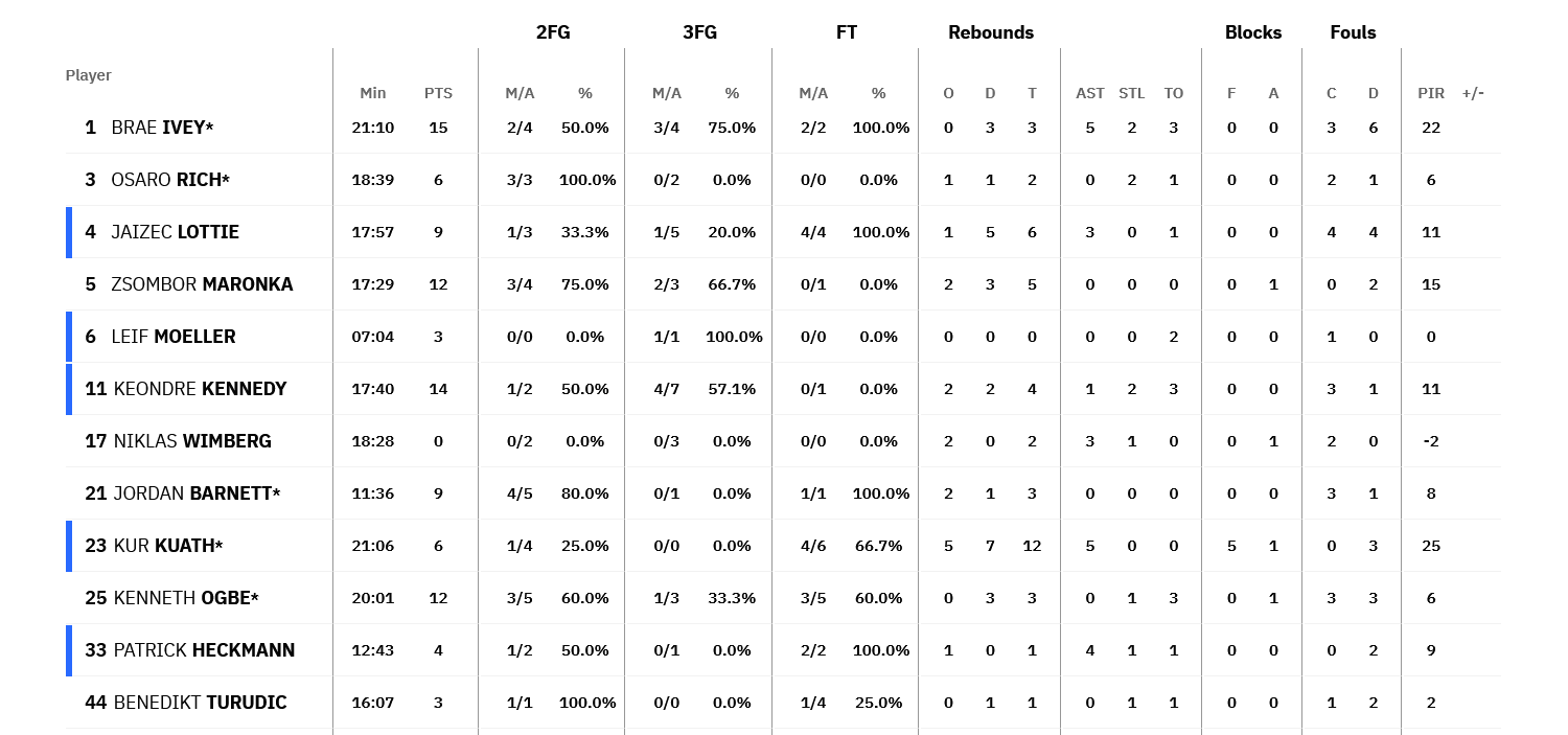 Ξεχώρισαν: Από τους νικητές κορυφαίος ο Άιβι με 15 πόντους, έχοντας συμπαραστάτες τους Κένεντι και Όγκμπε με 14 και 12 αντίστοιχα