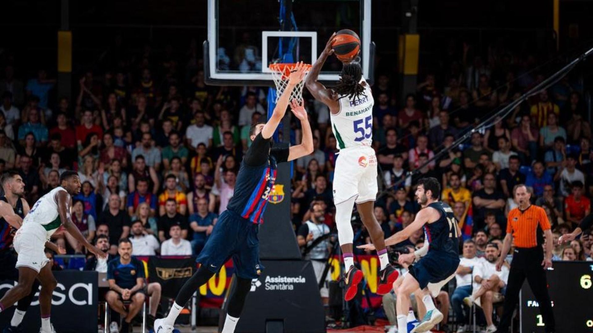 Σαρωτικοί οι "πράσινοι" στα πρώτα λεπτά και είχαν το πάνω χέρι, για αυτό και ήταν μπροστά με επτά πόντους στο τέλος της πρώτης περιόδου (25-18). Αν και η Μπαρτσελόνα μείωσε την διαφορά στο +1 σε δύο περιπτώσεις, οι Ανδαλουσιανοί προηγήθηκαν με τρεις πόντους στο τέλος του ημιχρόνου (40-37).