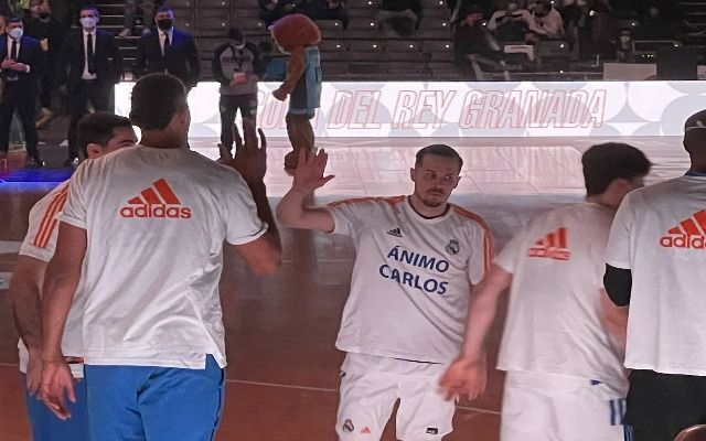Οι παίκτες της Ρεάλ Μαδρίτης στην προετοιμασία του αγώνα με την Μπρεογκάν για τα προημιτελικά του Κυπέλλου Ισπανίας, φόρεσαν μπλουζάκια για να στείλουν μήνυμα στήριξης στον Κάρλος Αλοθέν, ο οποίος υπέστη ρήξη χιαστού.