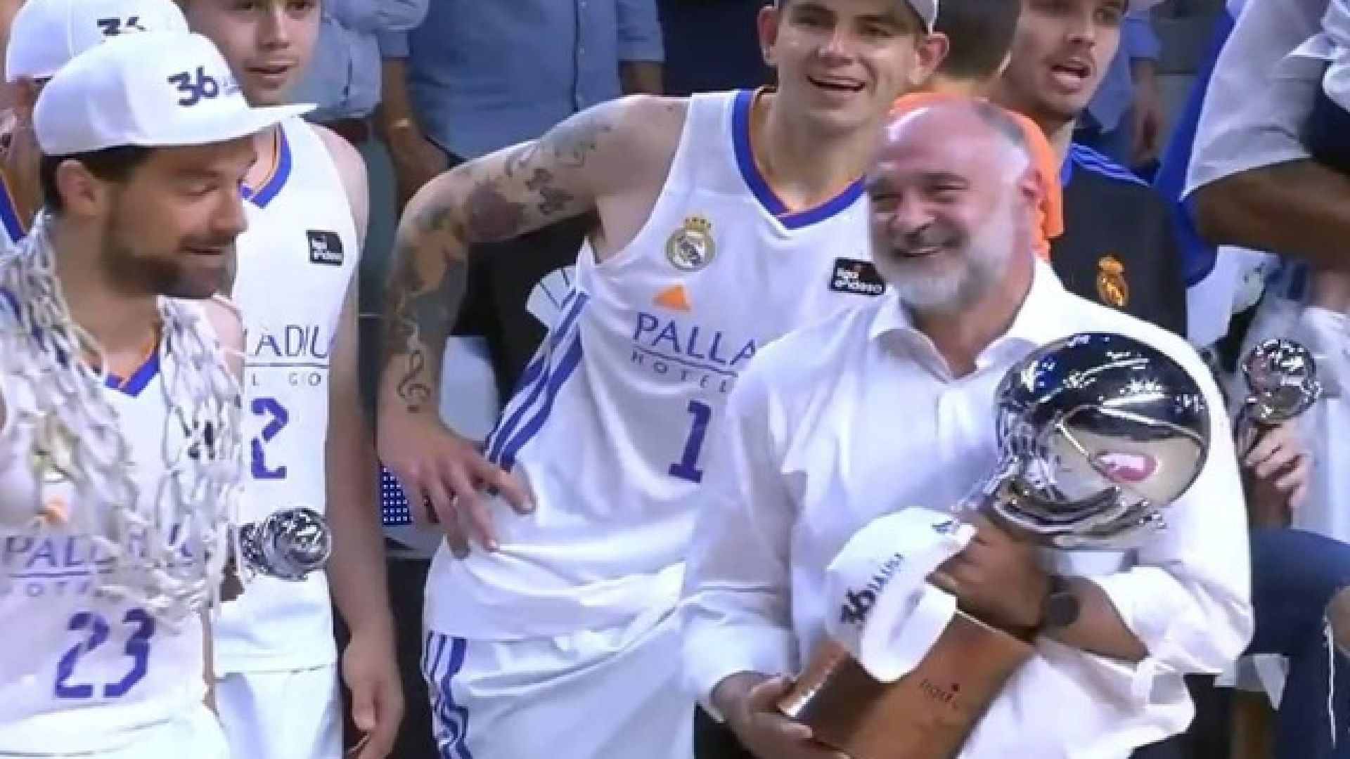 Η Ρεάλ Μαδρίτης κατέκτησε το πρωτάθλημα Ισπανίας, με τον Σέρχιο Γιουλ να δίνει στον κόουτς Πάμπλο Λάσο το τρόπαιο του Ισπανικού πρωταθλήματος, για να το σηκώσει πρώτος.
