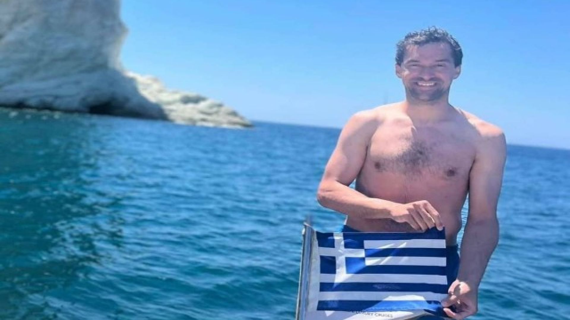 «Ευχαριστώ Σαντορίνη» ήταν το μήνυμά του Σέρχιο Γιουλ στα ελληνικά, ποζάροντας μαζί με την ελληνική σημαία