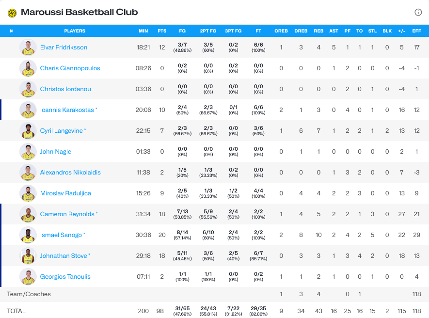 Η μεγαλύτερη διαφορά: +26 για το Μαρούσι (94-68) στο 37’