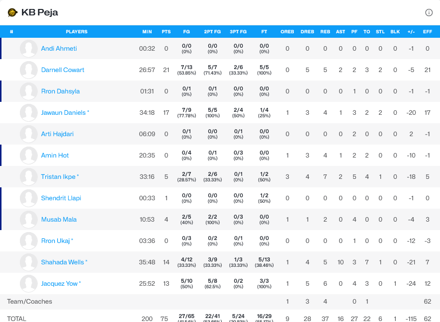 Ξεχώρισαν: Από 18 πόντους είχαν Ρέινολντς και Στόουβ, ενώ για την Πέγια, ο Κάουαρτ είχε 21 πόντους.
