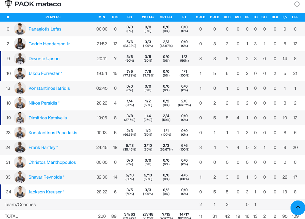Η μεγαλύτερη διαφορά: +19 για τον ΠΑΟΚ (89-70) στο 40’