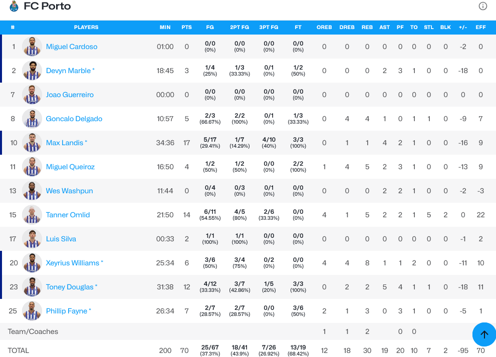 Ξεχώρισαν: Φόρεστερ και Ρέινολντς είχαν 15 και 14 πόντους αντίστοιχα. Για την Πόρτο, ο Λάντις είχε 17 πόντους.