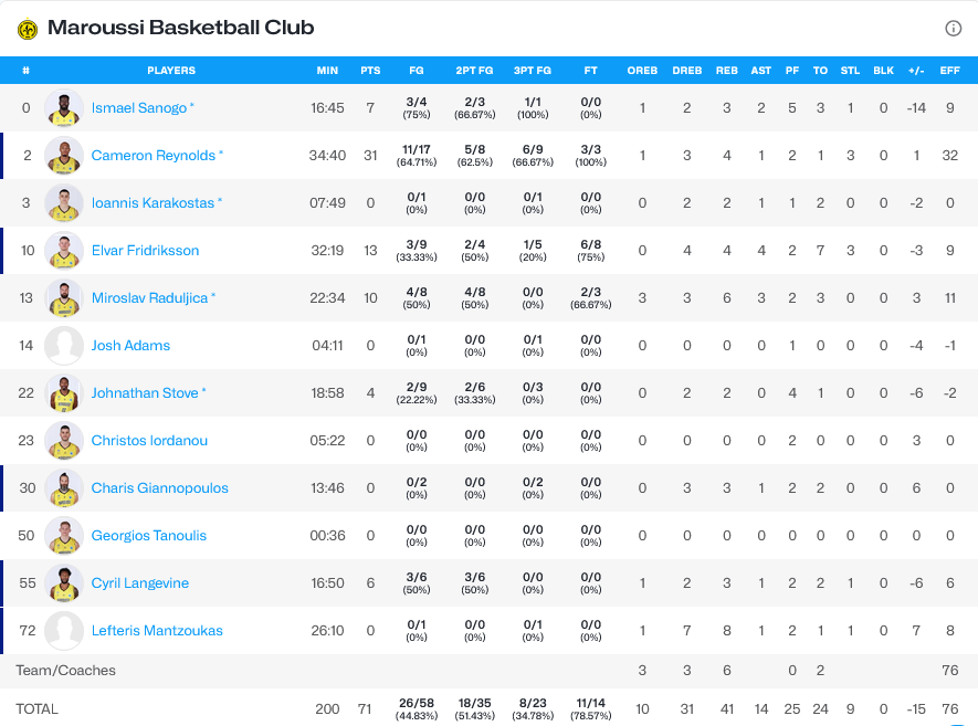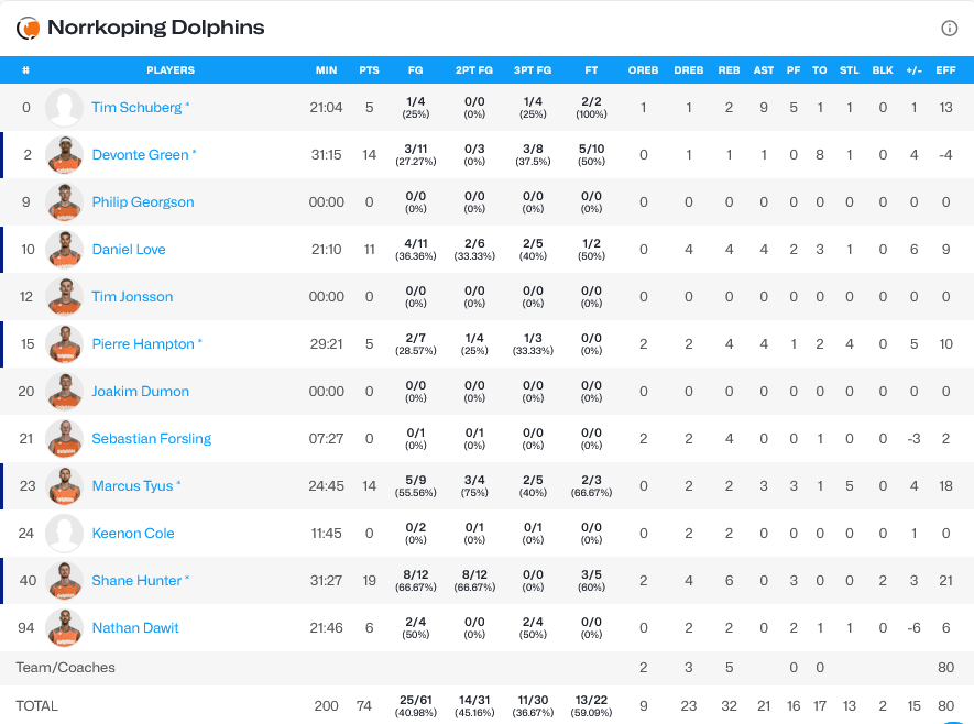 Ξεχώρισαν: 13 πόντους σημείωσε ο Φρίντρικσον και 10 ο Ραντούλιτσα, ενώ για την Νόρκεπινγκ, 19 πόντους πέτυχε ο Χάντερ και από 14 οι Τάιους και Γκριν.