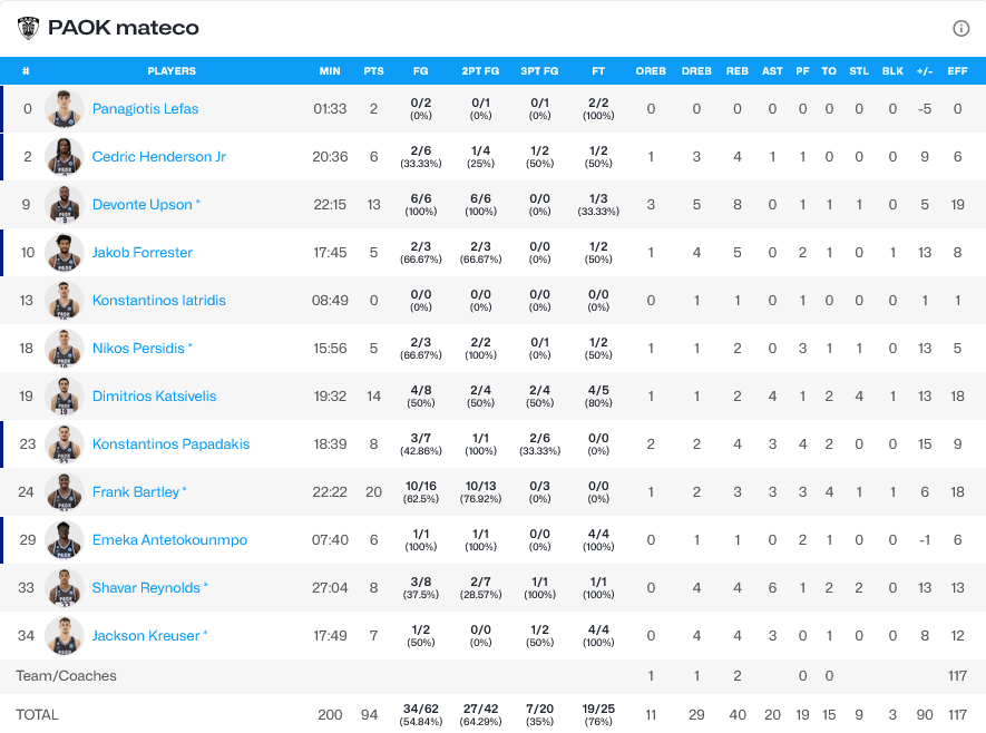 Η μεγαλύτερη διαφορά: +23 για τον ΠΑΟΚ (92-69) στο 38’