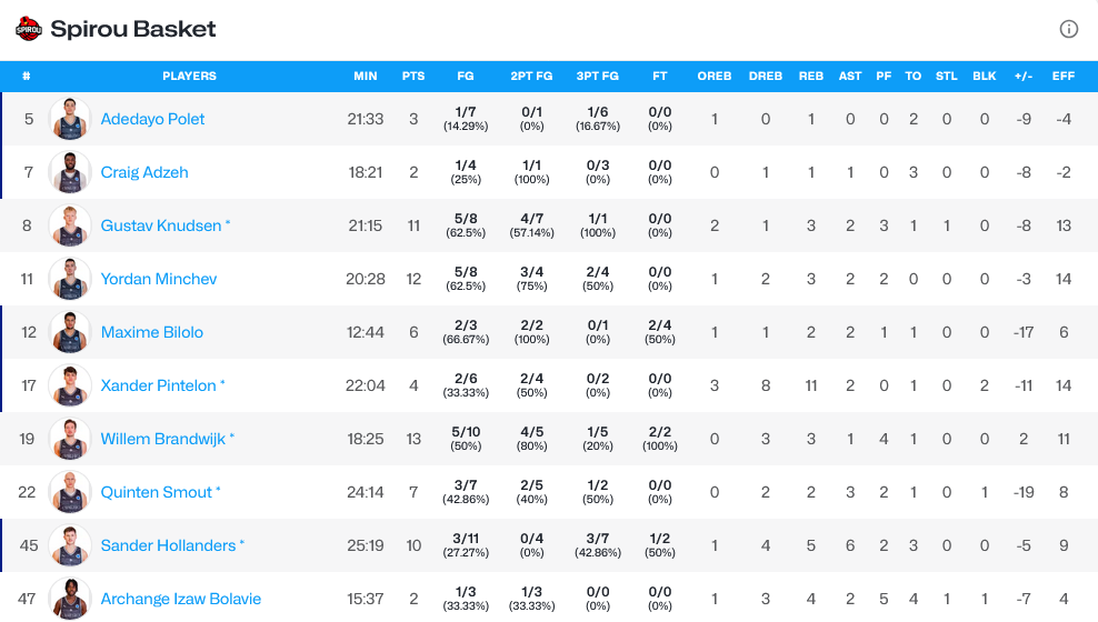 Ξεχώρισαν: Φρίντρικσον και Ραντούλιτσα ήταν συμπαραστάτες του Ρέινολντς, πετυχαίνοντας 13 και 11 πόντους αντίστοιχα, από τους Βέλγους διακρίθηκε ο Μπράντβαικ που σημείωσε 13 πόντους