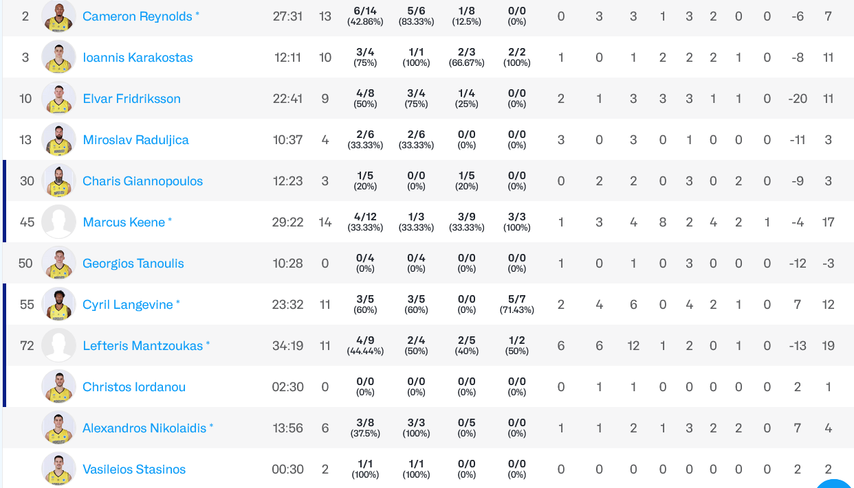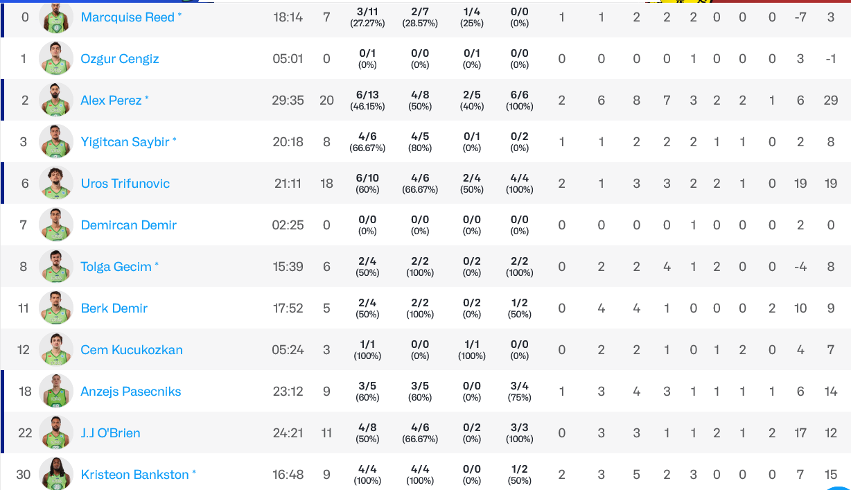 Ξεχώρισαν: Τριφούνοβιτς και Ο'Μπράιεν με 18 και 11 αντίστοιχα, από το Μαρούσι ο Κιν είχε 14 πόντους