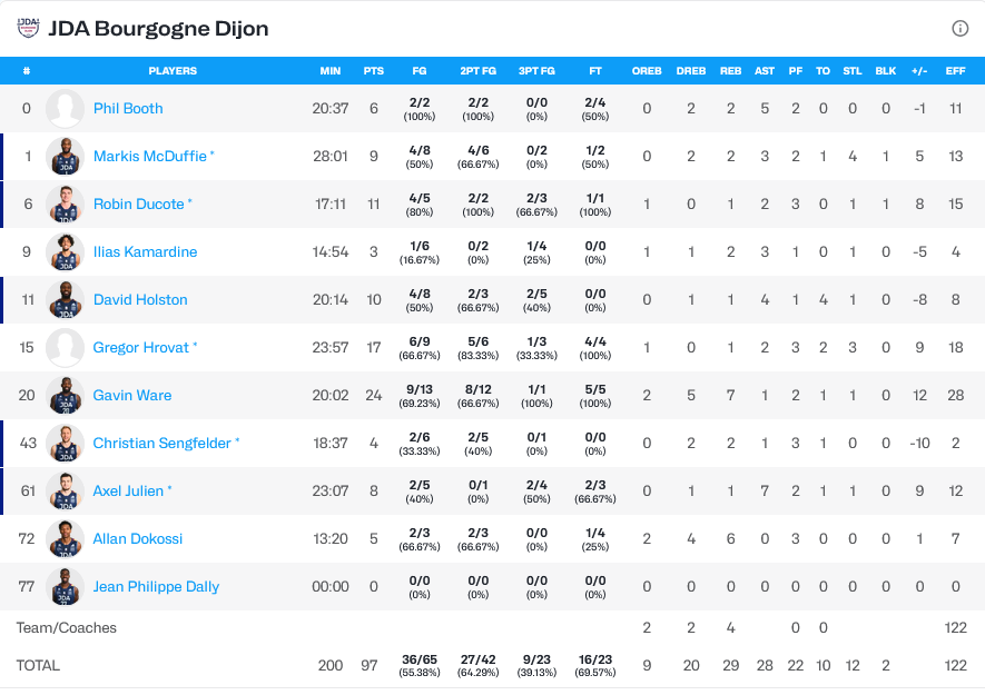 Ο ΠΑΟΚ γνώρισε την ήττα κόντρα στην Ντιζόν με σκορ 97-93, αποτέλεσμα, όμως, που δεν τον πλήγωσε καθώς το -4 δεν του στέρησε την πρώτη θέση του ομίλου.