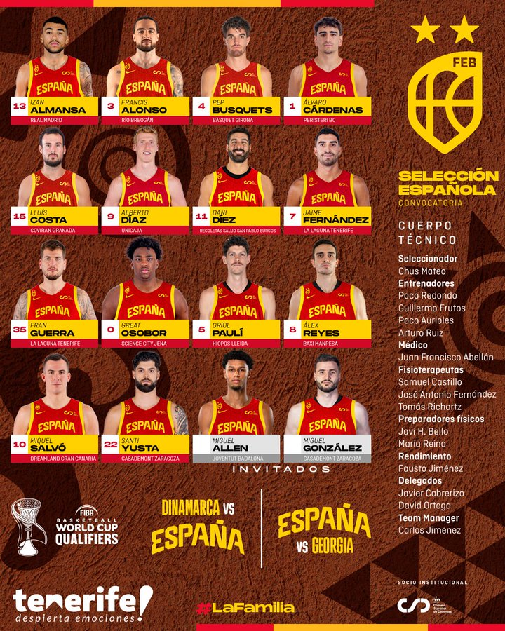 Έτσι, στις κλήσεις του Ομοσπονδιακού προπονητή της «Ρόχα» βρίσκεται το όνομα του Άλβαρο Καρντένας, του Περιστερίου, όχι όμως και ο Χουάντσο Ερνανγκόμεθ, με τον φόργουορντ του Παναθηναϊκού να μην συγκαταλέγεται στις 16 επιλογές του Ισπανού εκλέκτορα.