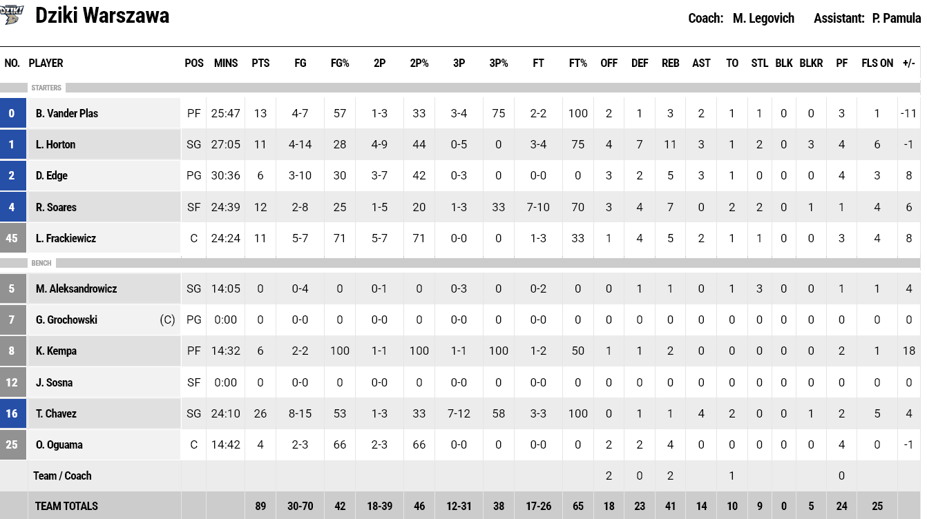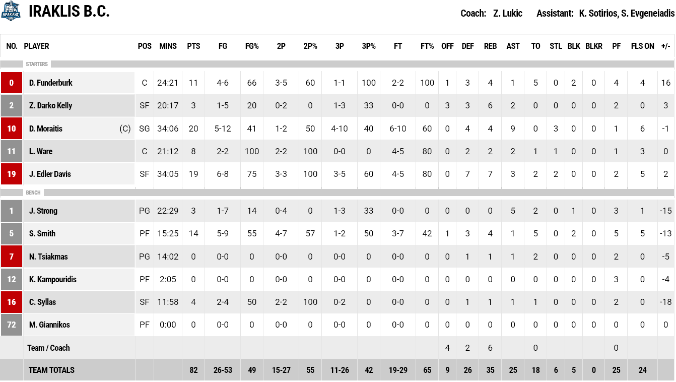 Από την Ντζίκι Βαρσοβίας διακρίθηκαν οι Τσάβεζ και Βάντερ με 26 και 13 πόντους αντίστοιχα. Από τον Ηρακλή έβαλαν οι Μωραιτης και Ντέιβις από 20 και 19 πόντους.