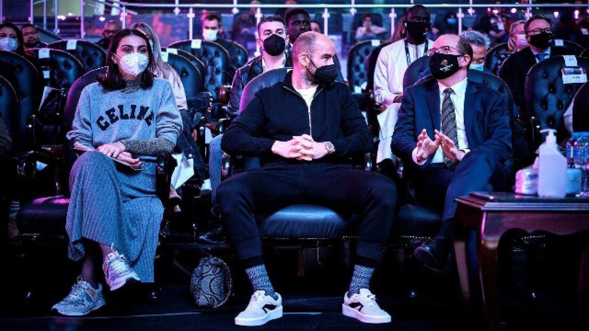 Ο Βασίλης Σπανούλης παρακολουθεί τον τελικό του Διηπειρωτικού Κυπέλλου ανάμεσα στην Μπούργος και στην Φλαμένγκο στο Κάιρο της Αιγύπτου, μαζί με τη σύζυγο του, Ολυμπία Χοψονίδου, καθώς και τον Γενικό Γραμματέα της FIBA, Ανδρέα Ζαγκλή.