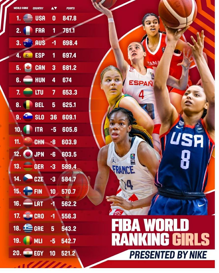 Πάντα πρώτη η Αμερική, ανέβηκε στην 2η θέση η Γαλλία, στην πρώτη 20άδα ανέβηκε η Εθνική μας ομάδα. Απίστευτη άνοδο 36 θέσεων για την Σλοβενία.