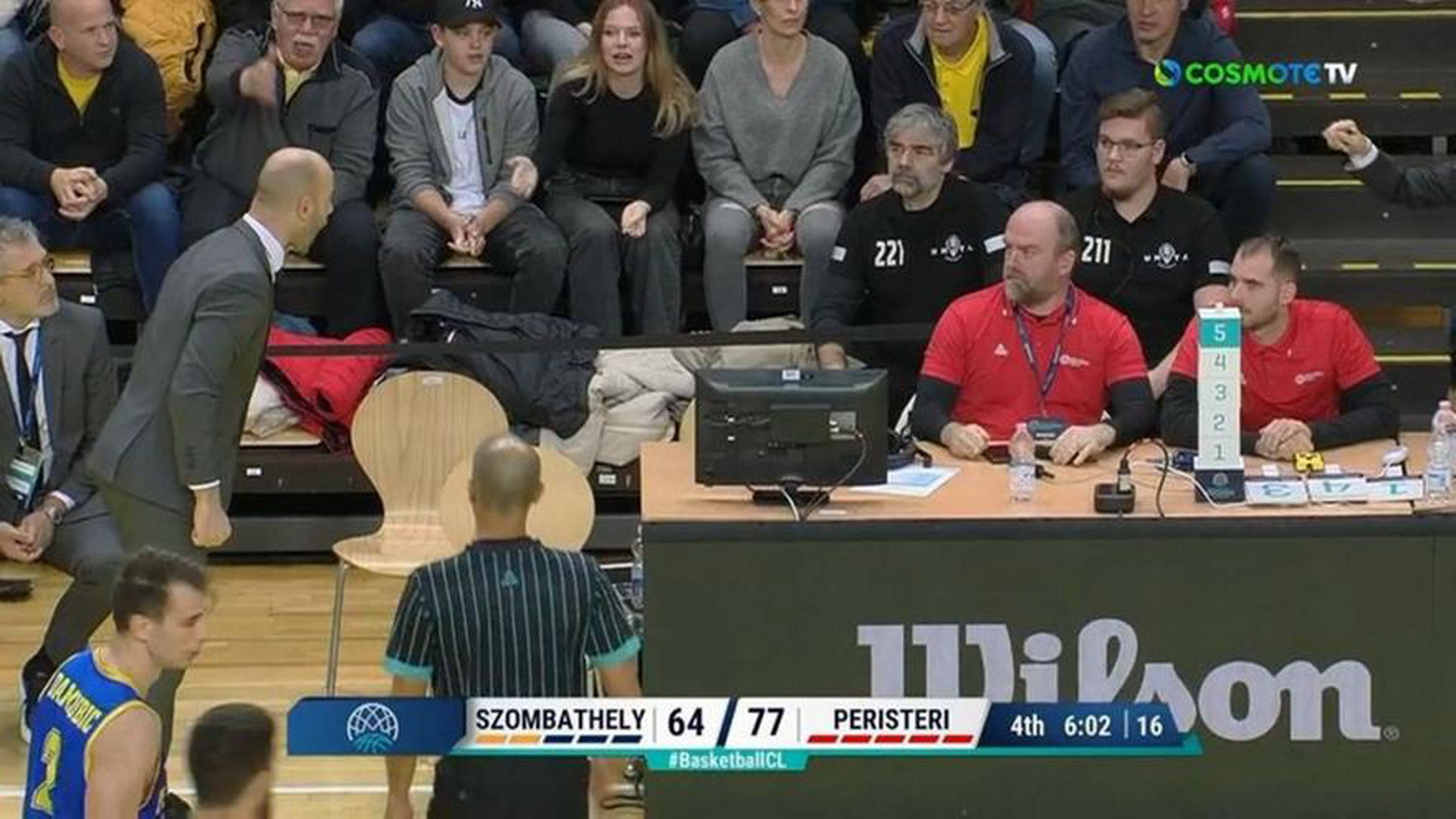 Η αποβολή του Βασίλη Σπανούλη στο 34’ της αναμέτρησης με την Σομπατέλι, λίγο έλειψε να γυρίσει… τούμπα το παιχνίδι για το Περιστέρι, με τους ιθύνοντες της ομάδας να τα έχουν με μέλος της γραμματείας, το οποίο ισχυρίζονται πως, όχι μόνο αρνήθηκε για δεύτερη φορά μέσα στο ματς να ακυρώσει τάιμ άουτ των φιλοξενούμενων, αλλά έβρισε και τον Έλληνα προπονητή.