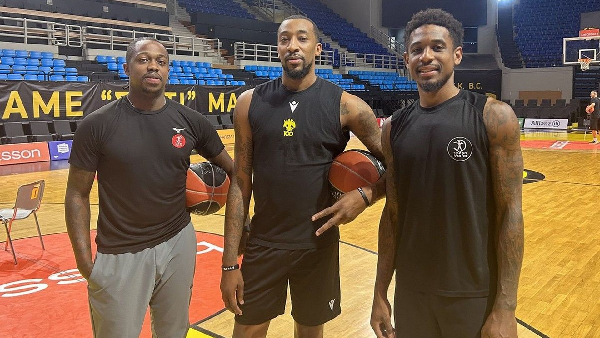 Αλληλεγγύη δείχνει η ΑΕΚ στους Αμερικανούς αθλητές της Χάποελ Τελ Αβίβ που έφυγαν από την εμπόλεμη ζώνη του Ισραήλ, με τον Μακρέι να υποδέχεται στο κλειστό των Άνω Λιοσίων τους Τζέικοβαν Μπράουν και Εξέβιερ Μάνφορντ.