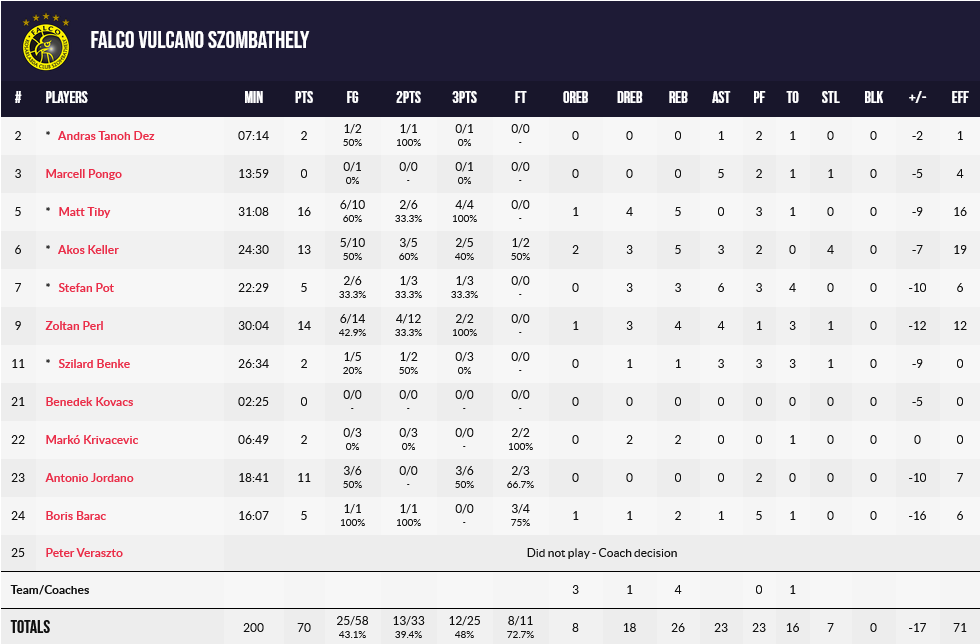 Ξεχώρισαν: Ο Ράνγκλαντ από πλευράς Περιστερίου με 18 πόντους και 7 ασσίστ ενώ είχαν απο 10 και 9 πόντους ο Χουγκάζ και Κασελάκης αντίστοιχα. Από πλευράς Σομπατέλι πρ΄ωτος σκόρερ ηταν ο Τίμπι με 16 πόντους και 5 ριμπάουντ