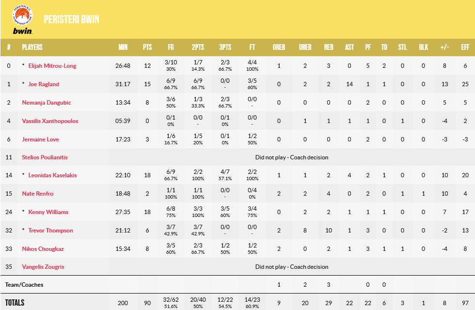 Η μεγαλύτερη διαφορά: Το +9 του Περιστερίου (63-54) στα 4'23" πριν την λήξη της τρίτης περιόδου.