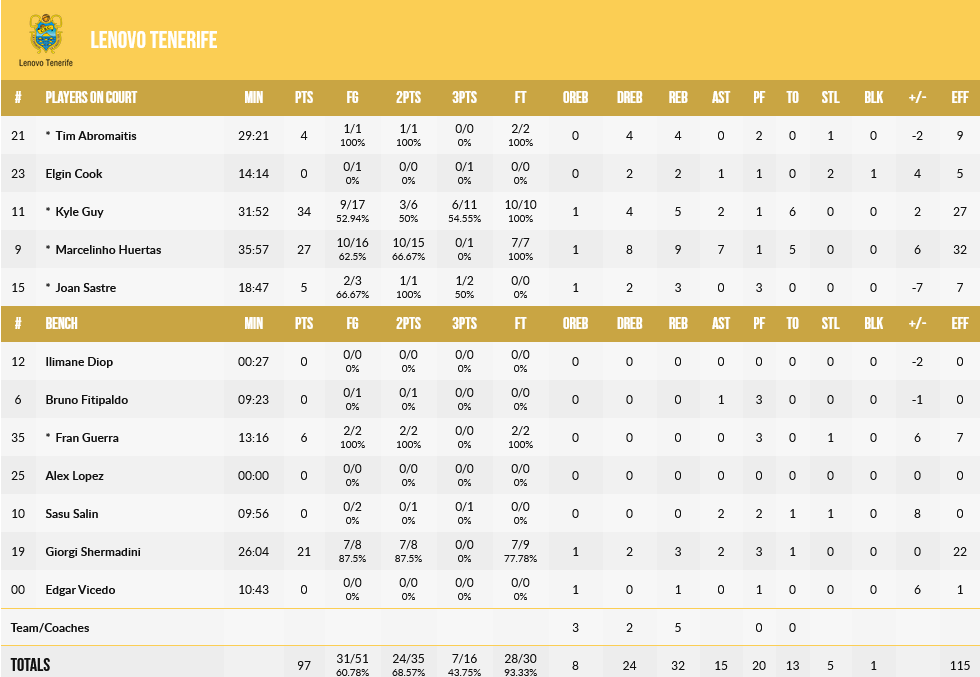 Η μεγαλύτερη διαφορά: +12 για την Τενερίφη (87-75) στο 37’