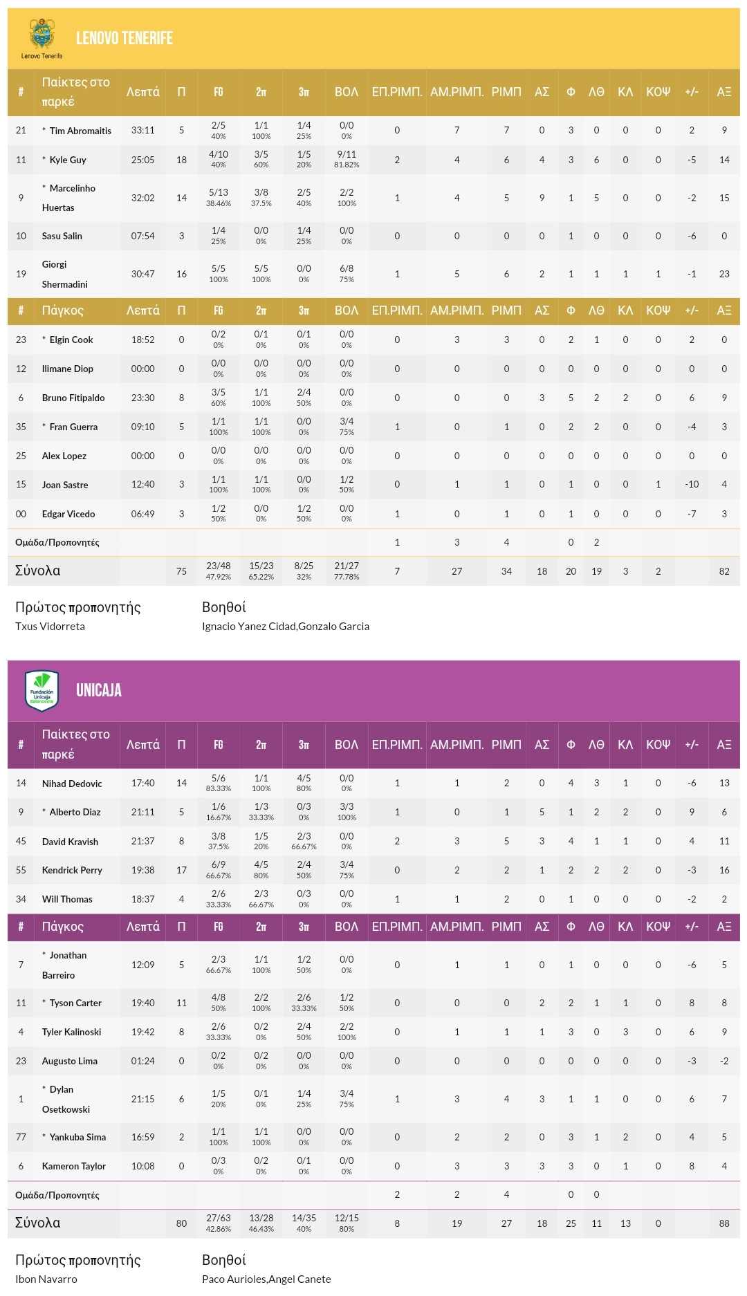 Για τους τροπαιούχους ο Κέντρικ Πέρι πέτυχε 17 πόντους,ενώ ο Νιχάτ Τζέντοβιτς προσέθεσε 14. Για τους ηττημένους ο Κάιλ Γκάι είχε 18 πόντους αλλά με 1/6 τρίποντα και ο Γκιόργκι Σερμαντίνι 16.
