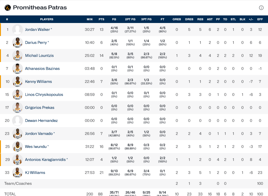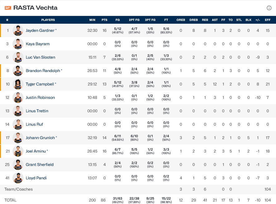 Ξεχώρισαν: 16 πόντους, ανάμεσα τους το καλάθι της νίκης, πέτυχε ο… ήρωας Ιγούντου, ενώ για την Ράστα Βέχτα, Γκάρντνερ και Αμίνου είχαν από 16 πόντους έκαστος.