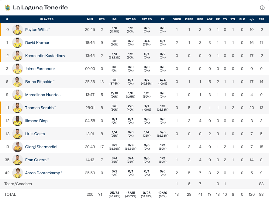 Η μεγαλύτερη διαφορά: +24 για την Τενερίφη (47-71) στο 40’