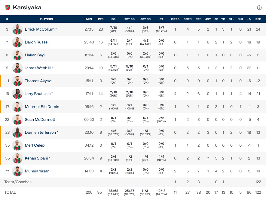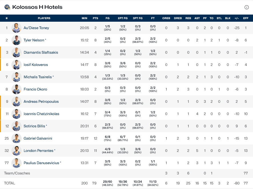 Ξεχώρισαν: 16 πόντους πέτυχε ο Ράσελ, ενώ για τον Κολοσσό, Γκαλβανίνι και Περάντες είχαν 12 και 11 πόντους αντίστοιχα.