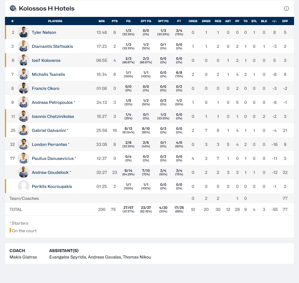 Ξεχώρισαν: Συμπαραστάτες του Ρόμπινσον ήταν οι Τραορέ και Σβαρτς με 14 πόντους, για τους Ροδίτες ο Γκάουντλοκ είχε 23