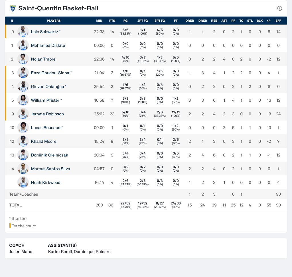 Μεγαλύτερη διαφορά: +23 υπέρ της Σεν Κεντέν, 34-57 στο 24'