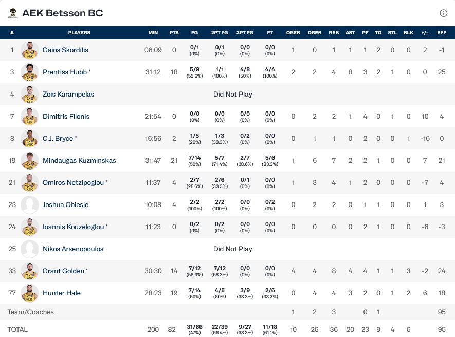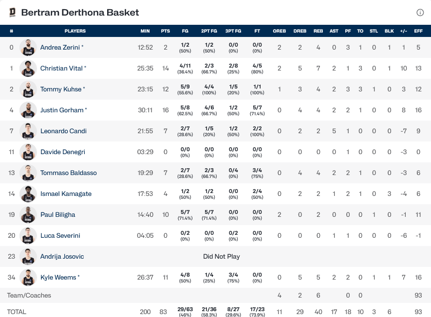 Ξεχώρισαν: 19 πόντοι ήταν ο απολογισμός του Χέιλ, ενώ για την Ντερτόνα ο Γκόρχαμ είχε 16 πόντους και ο Βίταλ 14.